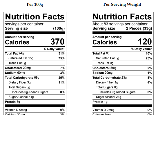 Allergen Info: Contains egg, milk, and soy; shares equipment with peanuts, tree nuts, and wheat. Not a reduced-calorie food; excess consumption may have a laxative effect.