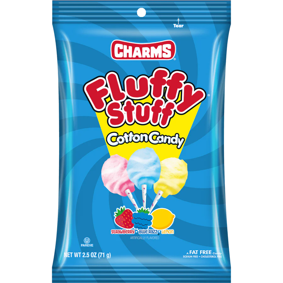 Made by Charms, a trusted name in classic confections, Fluffy Stuff Cotton Candy offers consistent quality and irresistible fun in every bag.