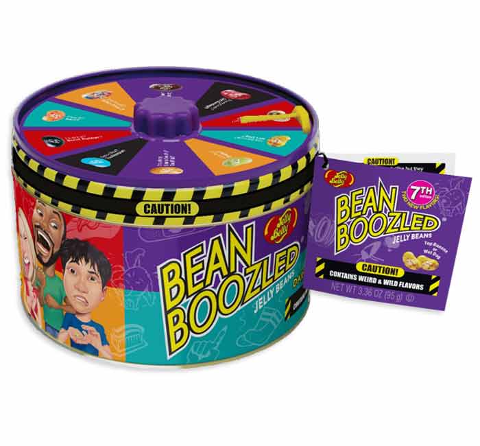 Introducing the Jelly Belly Bean Boozled Spinner Tin 7th Edition, a whimsically daring game of chance and flavor exploration packed into a convenient, travel-friendly tin. This 3.36oz collection offers an exciting twist on the classic jelly bean experience. Featuring a spinner that randomly selects one of the uncanny flavor pairings for you to try. With 8 tins in this set, each comes packed with a mix of traditional flavors and wacky counterparts like Buttered Popcorn, Birthday Cake, Dirty Dishwater or Rotten Egg. 20 flavors, 10 weird and 10 wild. You wont know which one you get till you spin the wheel ensuring endless fun and surprises for family gatherings, parties, or just adventurous snacking. Challenge your taste buds and see if you can tell the difference with the Jelly Belly Bean Boozled 7th Edition!