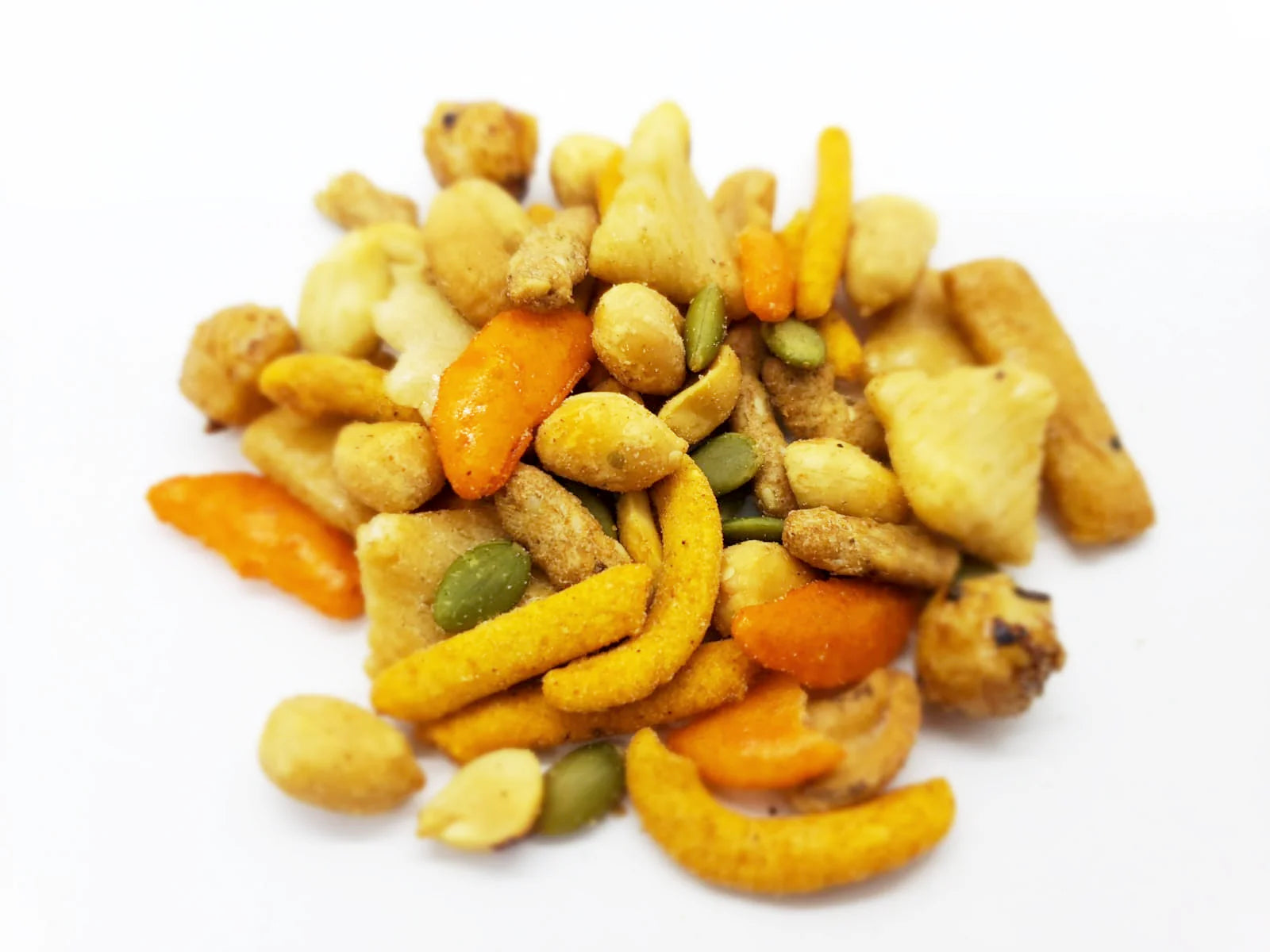 Spicy + salty flavor profile with a crunchy texture variety