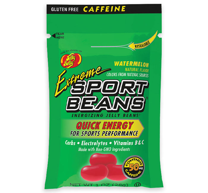 Experience an electrifying boost with Sports Beans Extreme Watermelon 1oz 24ct. These energizing jelly beans are packed with electrolytes, vitamins B and C, and contain a caffeine kick to power up your workouts or outdoor adventures. Each convenient 1oz pack bursts with refreshing watermelon flavor, ensuring a delicious and revitalizing snack. Perfect for athletes and fitness enthusiasts, this 24-count box ensures you're always ready to tackle your next challenge with vitality and endurance. Maximize your performance and savor the extreme with Sports Beans Extreme Watermelon!