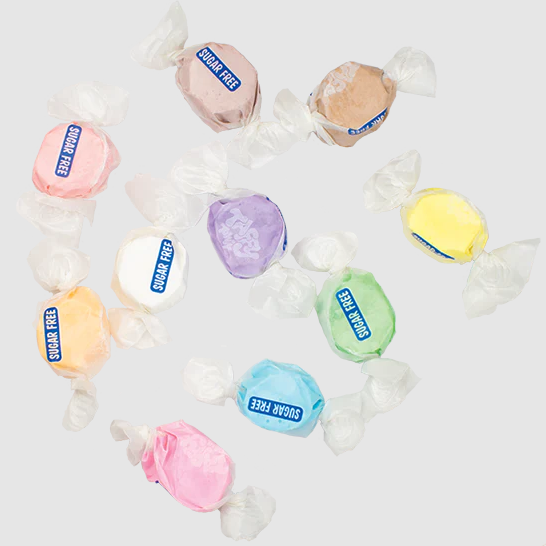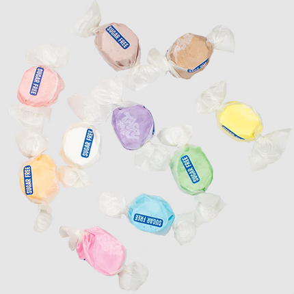 Our delicious Sugar-Free taffy has the same great flavor as our regular taffy with half the fat! This assortment contains all of our Sugar-Free flavors: Apple, Banana, Blue Raspberry, Cinnamon, Chocolate, Huckleberry, Licorice, Orange, Strawberry & Vanilla.